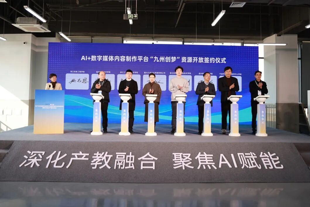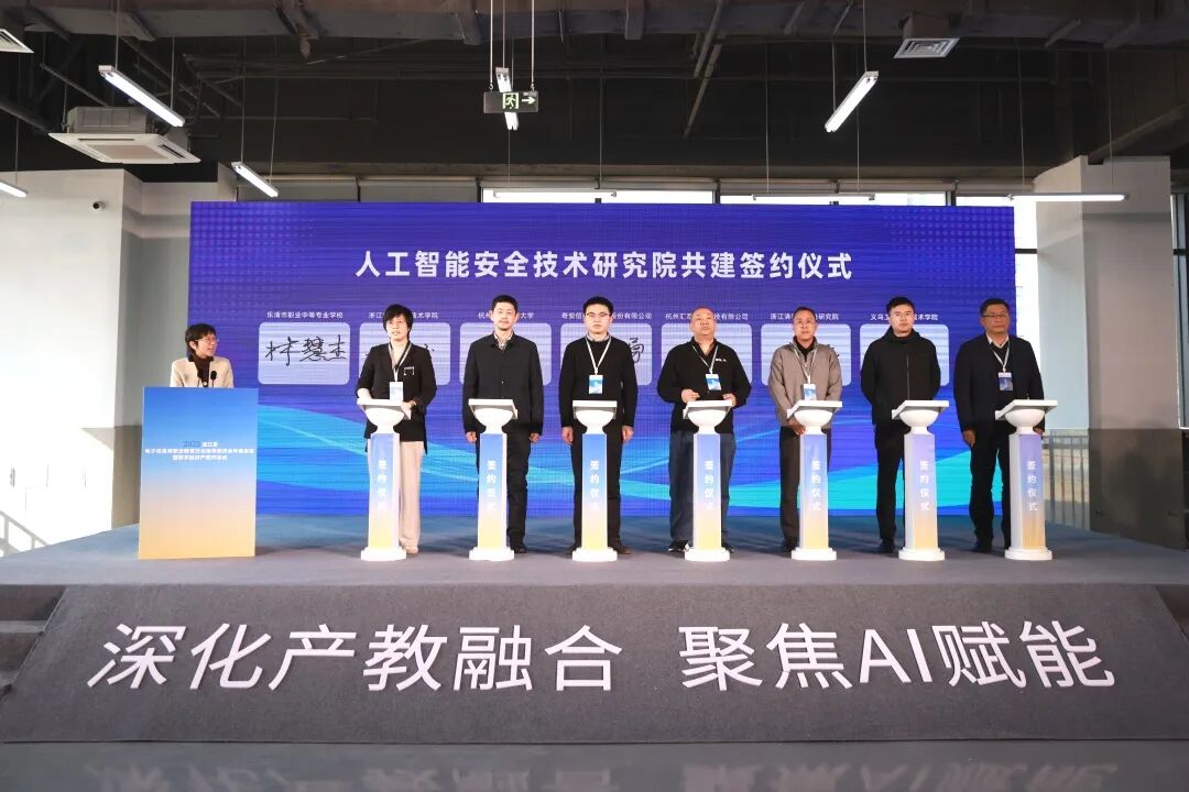 现场举行了浙江省智能体产教融合联盟共建签约仪式,AI+数字媒体内容制作平台“九州创梦”资源开放签约仪式、工业智能人才联合培养签约仪式和人工智能安全技术研究院共建签约仪式,行指委成员代表与字节跳动等企业代表,全国数据安全产教融合共同体成员单位代表,浙江清华长三角研究院等科研院所签订合作协议,充分体现了教育链、人才链与产业链、创新链的深度融合。签约仪式由温州职业技术学院副校长王志梅主持。