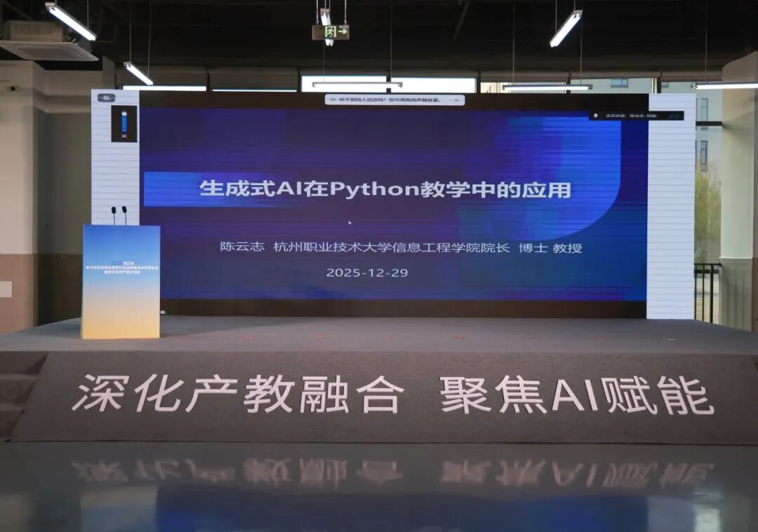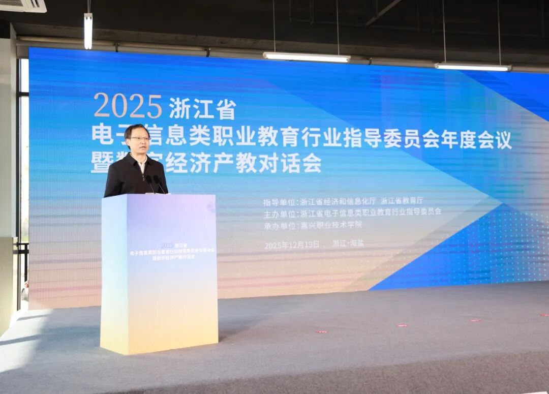 本次会议以“深化产教融合、聚焦AI赋能”为主题,由浙江省经济和信息化厅、浙江省教育厅指导,行指委主办,嘉职院承办。会议旨在深入学习贯彻党的二十届四中全会精神,全面落实《教育强国建设规划纲要》关于“加快建设现代职业教育体系,培养大国工匠、能工巧匠、高技能人才”的战略部署,扎实推进职普融通、产教融合、科教融汇,构建政校行企协同育人新机制。